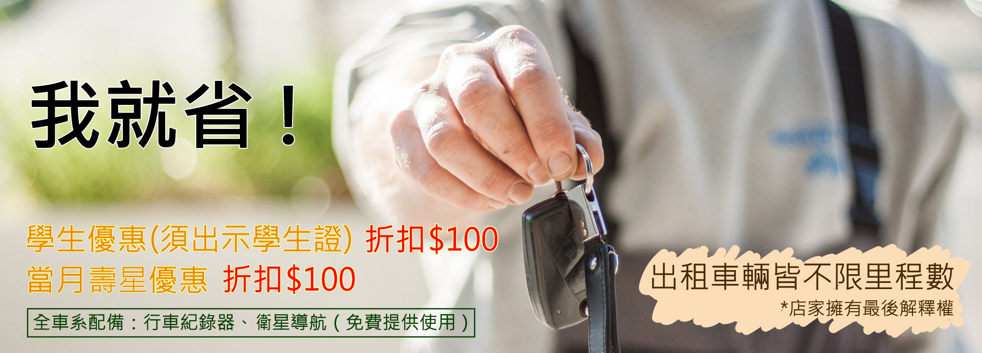附註:1小時限30公里,1天限300公里,逾每公里加收3元。
